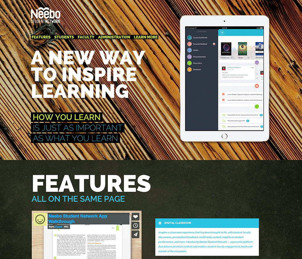 Imagine a classroom experience that has been brought to life, with student-faculty discussions, personalized feedback, multimedia content, insights on student performance, and more. Introducing Neebo Student Network — a powerful platform that delivers premium content and enables student-faculty engagement, inside and outside of the classroom.